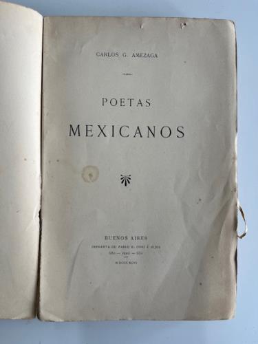 Subtítulo: Colección escojida de composiciones en verso, escritas por americanos en el presente siglo." Encuadernación holandesa, de la época, fatigada. Raspones en los bordes y en los platos. Manchas en las páginas del índice pero sin tocar letras. Esta es la primera antología de poesia hispanoamericana.
