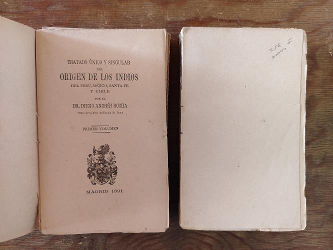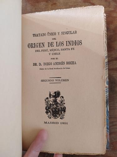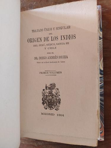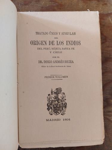 Tratado único y singular del Origen de los Indios del Perú, Méjico, Santa Fé y Chile. Dos tomos