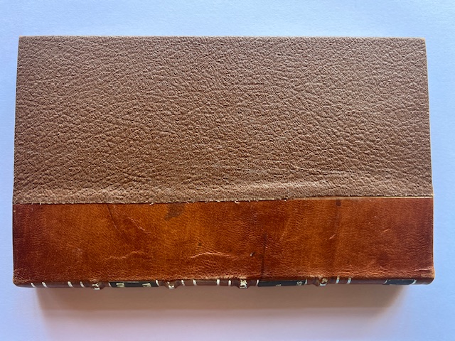 Piel. Papel tostado y con manchas de óxido en alguna páginas. Nombre de anterior propietario en la portada.