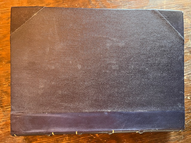 Tapa dura en piel, con las cubiertas. Páginas amarillentas.