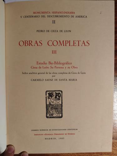 Holandesa. Facsímiles. Monumenta Hispano-Indiana. V Centenario del Descubrimiento de América. I. La Crónica del Perú. Las guerras civiles peruanas. II. Las guerras civiles peruanas. III. Estudio Biobibliográfico.