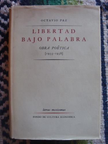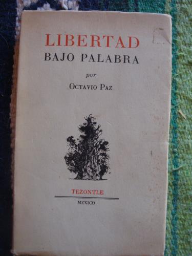 Libertad bajo palabra, fue el título de un libro de Paz, publicado en 1949 y que se halla a la venta en nuestra librería. Tela, original de la edición, con la sobrecubierta fatigada. Contiene los siguientes apartados: Bajo tu clara sombra. Condición de nube. Puerta condenada. ¿Aguila o sol? A la orilla del mundo.