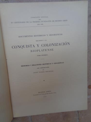 PRIMERA EDICIÓN. 1941. Comisión oficial del IV Centenario de la Primera Fundación de Buenos Aires, 1536-1936. Buenos Aires, Argentina.