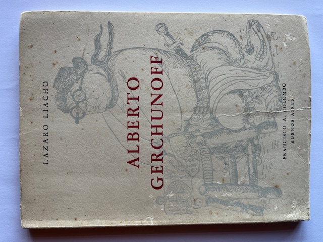 Rústica. Dibujo de Clement Moreau. "Entre los papeles dejados por Lázaro Liacho, estaban listas para la imprenta las presentes páginas sobre Alberto Gerchunoff, el autor de Los gauchos judíos. Su esposa y compañera los rescata del olvido y edita en homenajea los dos escritores desaparecidos".