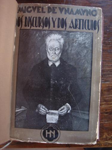 Rústica con las cubiertas. Firma anterior propietario en página de cortesía. Papel transparente de protección con pérdidas en el lomo. Artículos publicados por Unamuno en la revista Ahora en 1933.