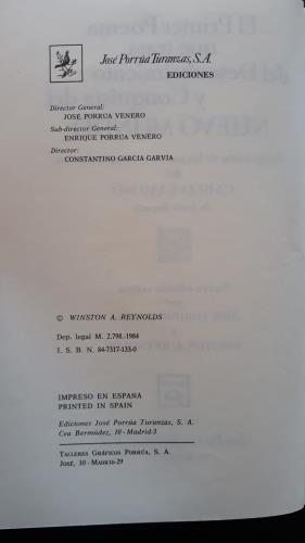 PRIMERA EDICIÓN en esta editorial. 1984. José Porrúa Turanzas S.A. Madrid, España.