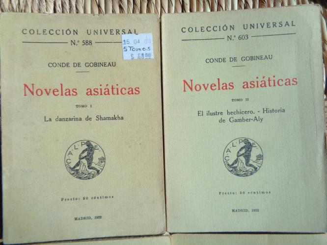 Rústica, cubiertas originales. Tomo I, la danzarina de Shamkha. Tomo II, El ilustre hechicero ; Historia de Gamber - Aly . Tomo III, La guerra de los turcomanos. Tomo IV Los amantes de Kandahar. Tomo V, y último (De viaje).