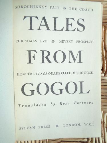 Tela, original de la edición. Ocho láminas en 6 hojas. Contiene: Introduction, by Janko Lavrin; Sorochinsky fair; Christmas eve; How the two Ivans quarrelled; The Nevsky prospect; The coach; The nose. Ilustrated by Robert Turner.