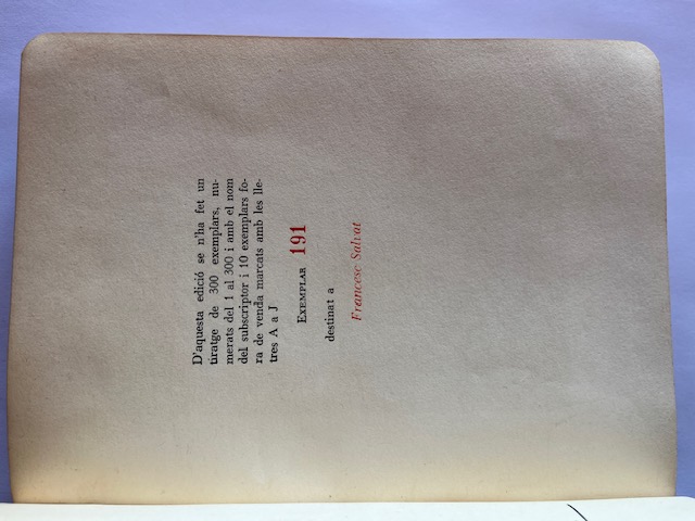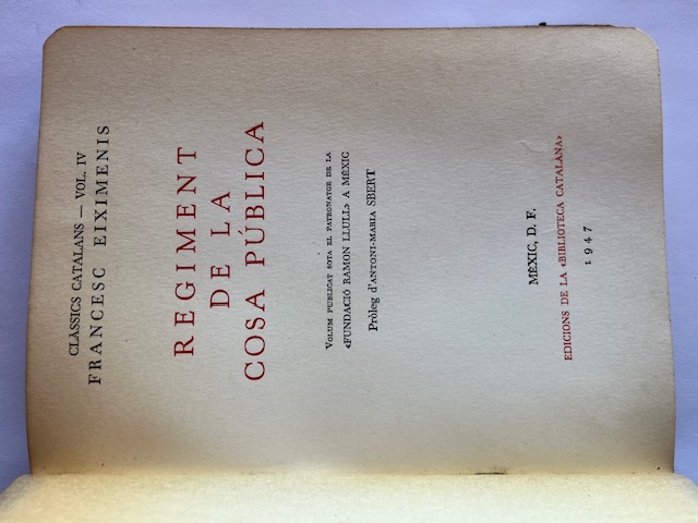 Primera edición en esta editorial. 1947. Edicions de la Biblioteca Catalana; Biblioteca catalana (Costa-Amic), IV y V. México D.F., México.