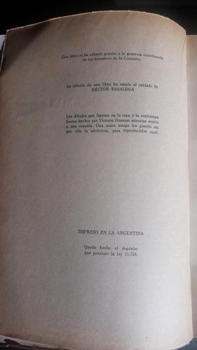 Rustica con las cubiertas. Manchas de óxido muy suave en los dos primeros pliegos. Intonso. Dibujo a color de Basaldúa y dos dibujos mas en B/n de Norah Borges y de Leonor Vassena. Dibujo de la cubierta y la contracubierta de Victoria Ocampo-.