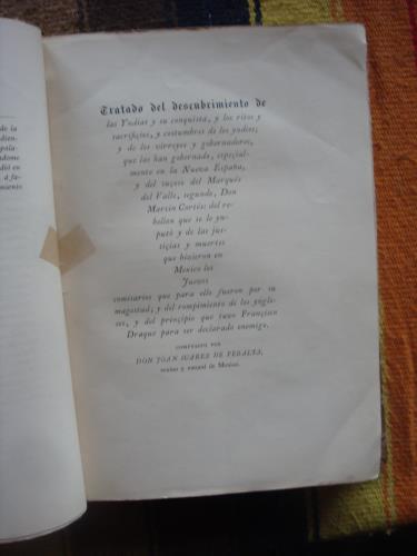 Holandesa. Lomo abierto sin caída. Palau se extraña de la omisión del nombre del autor de la crónica en la portada del libro.