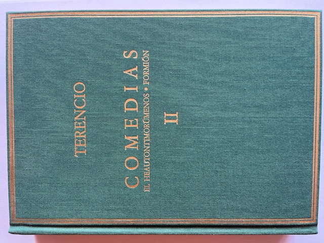 Tapa dura. v. 1. La andriana ; El eunuco v. 2. El heautontimorúmenos ; Formión v. 3. Hécira ; Adelfos.