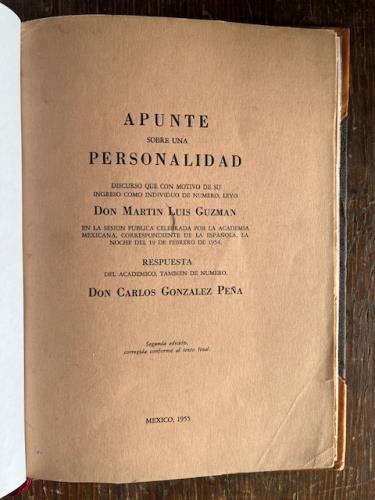 Apunte sobre una personalidad : discurso que con motivo de su ingreso como individuo de número, leyó Don Martín Luis Guzmán en la sesión pública