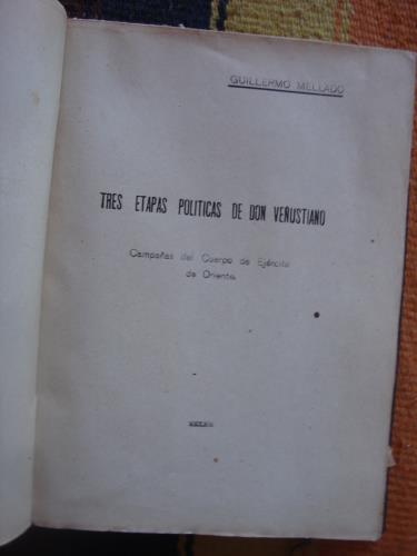 Tres etapas políticas de don Venustiano. Campañas del Cuerpo del Ejercito de Oriente
