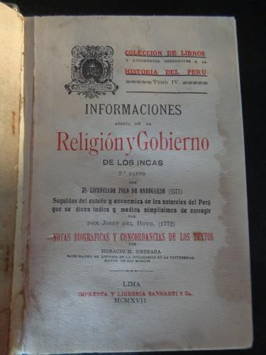 PRIMERA EDICIÓN. 1917. Colección de libros y documentos referentes a la Historia del Perú. Tomo IV. Lima, Perú.