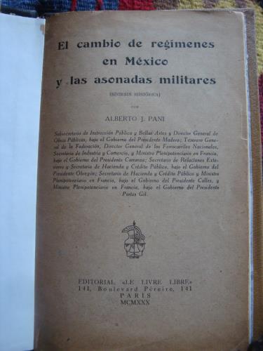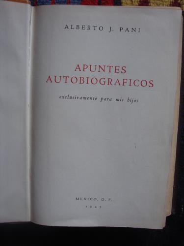 Holandesa. Edición de 500 ejemplares. El ejemplar trae dos facturas de El palacio de Hierro, de 1933, de compra de tela, crema, loción y facturadas a la dirección de la Secretaría de Hacienda, que él dirigía. Pani fue un controvertido secretario (ministro) de diversos gobiernos revolucionarios.