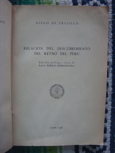 124 págs. 24 x 17 cm. Edición, prólogo y notas de Raúl Porras Barrenechea. Castellano.