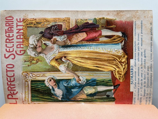 Cartoné. Con la cubierta original en color. Contiene 4 partes. Primera parte, cartas amorosas. Segunda parte, el arte de amar y hacerse amar. Tercera parte, diccionario del amor. Cuarta parte, composiciones poéticas y versos amorosos para postales...