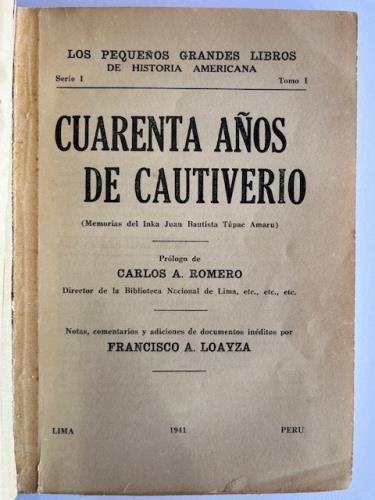 Cuarenta años de cautiverio. (Memorias del Inka Juan Bautista Túpac Amaru).