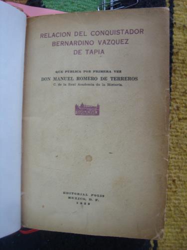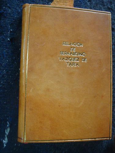 Piel con las cubiertas. Esta Relación de méritos se ha reimpreso varias veces por ser un importante testimonio sobre la conquista de un personaje destacado en ella. Palau por error anota 1929 en lugar del correcto 1939.