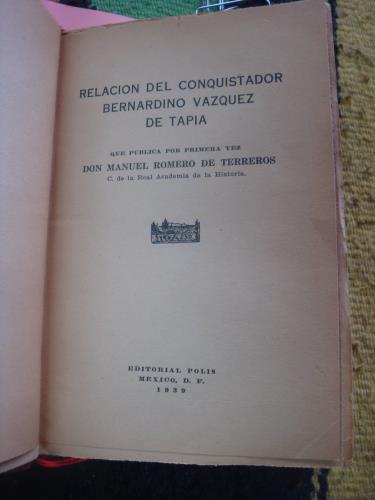 Relación de Conquistador Bernardino Vázquez de Tapia.