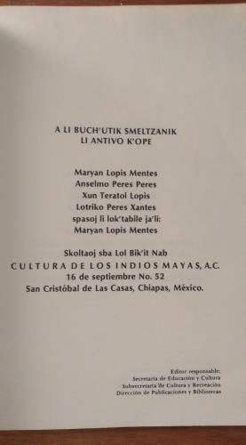 PRIMERA EDICIÓN. 1983. Secretaría de Educación y Cultura. Subsecretaría de Cultura y Recreación. Dirección de Publicaciones y Bibliotecas. Chiapas, México.