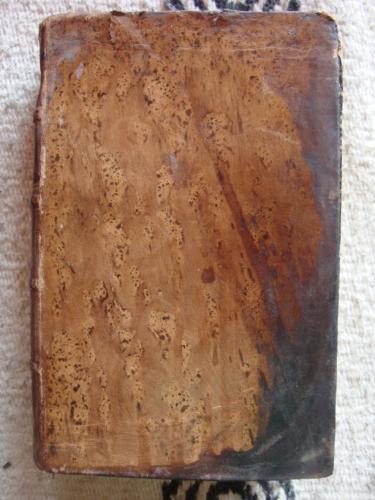 Piel, tal vez de la época. Ligeros raspones en los bordes y cubiertas desprendiéndose. Sello de librero y nombre del anterior propietario. Orla de humedad en todo el interior del libro, sin afectar la lectura. Fotografia de periódico del autor pegada en la página de créditos.
