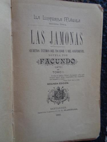 Las jamonas. Secretos íntimos del tocador y del confidente. Tomo I. (1871)