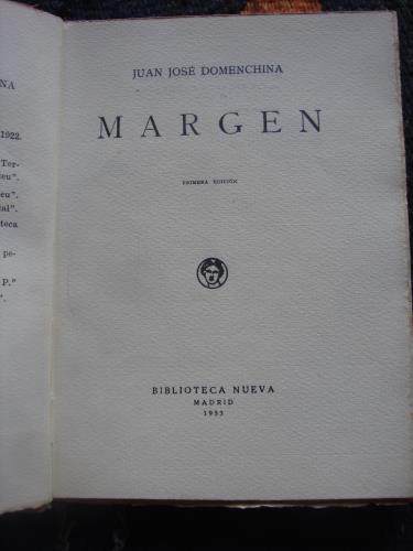 Palau en las fichas de este autor dice: "De la actual pleyade de poetas españoles, Domenchina se distingue por su estilo original". Rústica, con las cubiertas. Ligeros raspones en los bordes. Intonso.