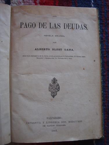 Holandesa; reparación en la parte superior de la portada, afectando letras de "El" en el título. Blest Gana está considerado como el creador de la novela chilena y es uno de los mejores escritores hispanoamericanos del siglo XIX.