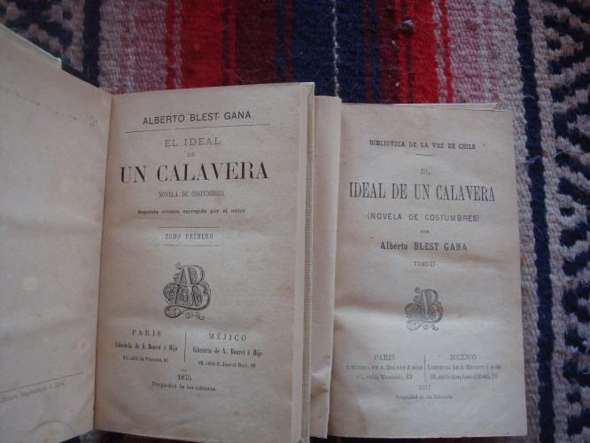 Tela, original de la edición, en diferentes colores cada tomo. Raspones en los bordes. Ligeras manchas de óxido. Ex libris anterior propietario en guardas. Primera novela de Blest Gana despues de 31 años de silencio. Es una de las grandes novelas historicas de Hispanoamérica en el siglo XIX.