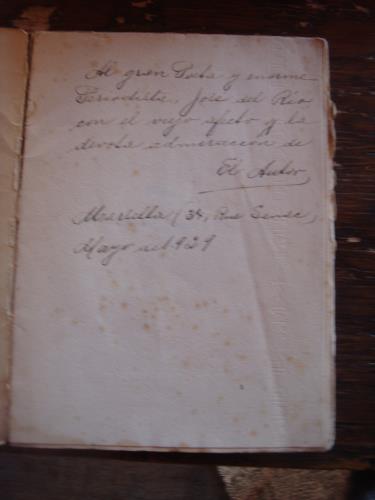 Dedicatoria manuscrita a Juan Valera. Keratol.