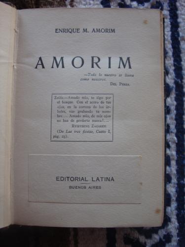 Holandesa, con las cubiertas y ligeros raspones. Primer libro de prosa de Amorim. Dedicatoria manuscrita del autor.