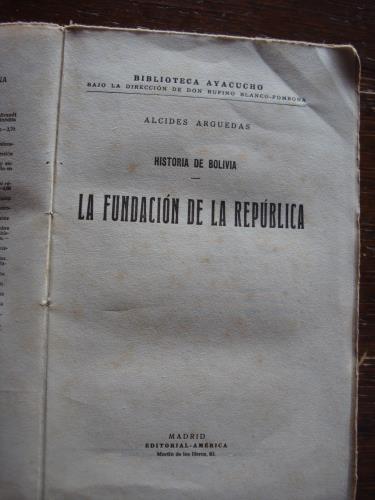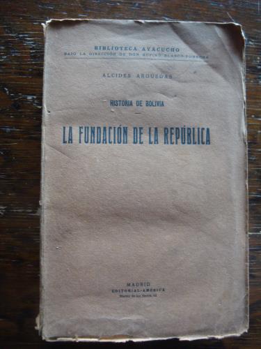 Rústica, con las cubiertas. Manchas de óxido y sombreados. Ultimas páginas con dobleces en la esquina inferior. Primer tomo de los cinco de Historia de Bolivia escritos por Arguedas.