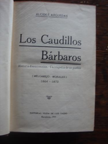 Sub título: Historia-Resurrección.-La tragedia de un pueblo (Melgarejo – Morales) 1864 – 1872. Quinto y último tomo de la Historia de Bolivia escrita por Arguedas. Keratol, original de la edición. Retrato de Melgarejo y de Morales.