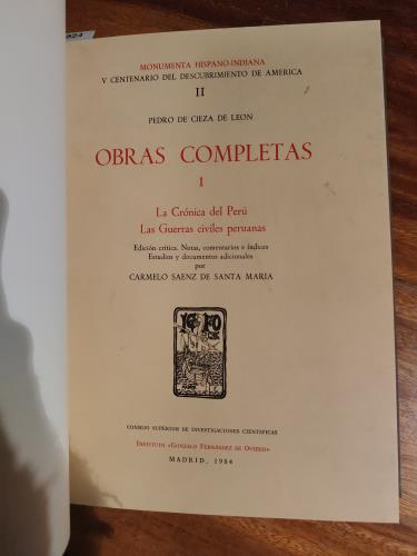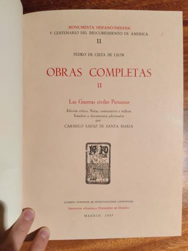 Holandesa. Facsímiles. Monumenta Hispano-Indiana. V Centenario del Descubrimiento de América. I. La Crónica del Perú. Las guerras civiles peruanas. II. Las guerras civiles peruanas. III. Estudio Biobibliográfico.