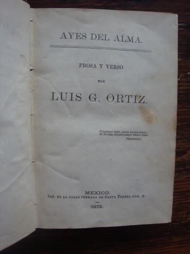PRIMERA EDICIÓN. 1872. Imp. en la Calle Cerrada de Santa Teresa. México.