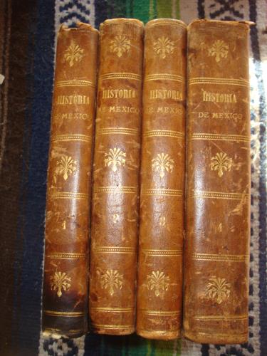 Holandesa de la época. Trabajo fundamental sobre la Historia de México. En el tomo IV estan incluidos las 18 láminas plegadas y el Croquis de México Tenochtitlan, que algunas veces se presenta en volumen aparte y se describe como Quinto Tomo. El tomo I tiene una mancha de agua en la parte baja de las paginas sin afectar texto.