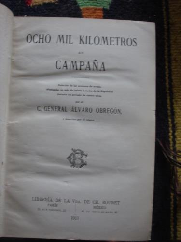 Subtítulo: Relación de las acciones de armas, efectuadas en más de veinte Estados de la República durante un periódo de cuatro años por el C. general Álvaro Obregón, y descritas por él mismo.Keratol, original de la edición, con las cubiertas de la edición en rústica. La cubierta en la parte posterior tiene el lomo despegado pero sin que se suelte el libro. Fotografías.