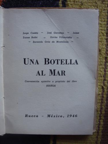 Rústica, con las cubiertas. Edición de 300 ejemplares (Este es el 145) Participan en la "conversación epistolar: Jorge Cuesta, José Gorostiza, Jaime Torres Bodet, Xavier Villaurrutia y el autor.