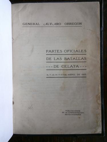 Partes oficiales de las batallas de Celaya, 6, 7, 13, 14 y 15 de abril de 1915