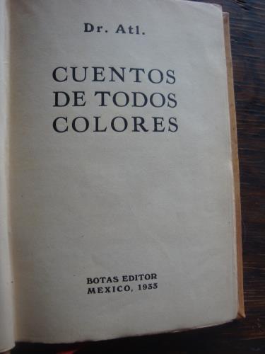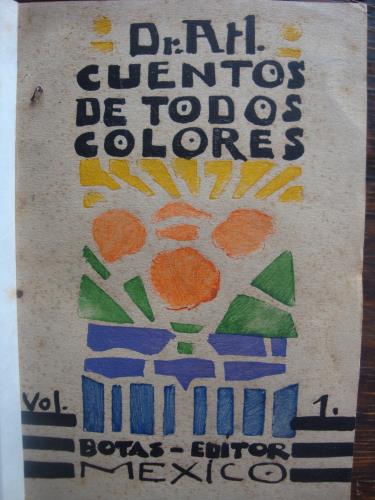 Badana, con las cubiertas. Magnífica cubierta dibujada por el Dr. Atl. Tiraje reducido. Es el primer tomo y más raro y difícil de encontrar de los tres tomos de cuentos -magníficos- que publicó el Dr. Atl, uno de los pintores más importantes de la época de la Revolución y un gran narrador.