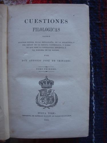 PRIMERA EDICION. 1861. Imprenta de Estaban Hallet,. Nueva York, USA.