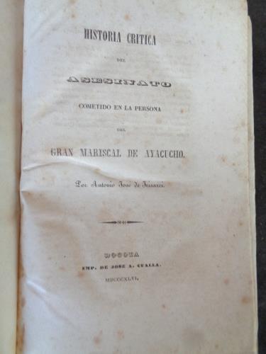 Historia crítica del asesinato cometido en la persona del Gran Mariscal se Ayacucho.