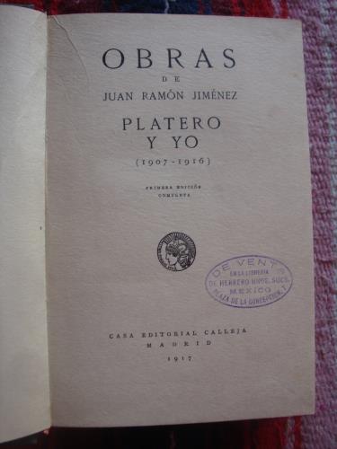 Keratol, con las cubiertas, algo sucias. Sello de librería en la portada. Aunque se registran ediciones desde 1914, esta es la que se considera como la primera edición completa de la famosa y difundida obra del premio Nobel español. Debe tenerse presente que en esta edición, que no es sólo corregida, figuran nuevos textos, fechados en 1916 y que por primera vez se incorporan al libro.