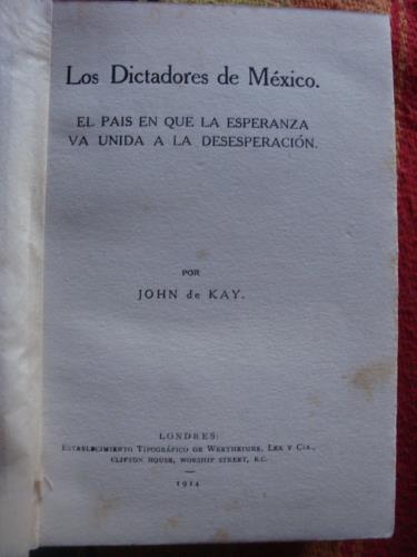 Sub título: El país en que la esperanza va unida a la desesperación. Keratol, original de la edición, descolorida en los cubiertas como en el lomo. Retrato de Huerta. Un libro a favor de Huerta.