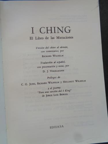819 págs. 19.5 x 13.5 cm. Prólogos de C.G. JUng- Richar Wilhelm y Hellmunt Wilhelm. Castellano (Traduccion del alemán por D.J. Vogelmann).