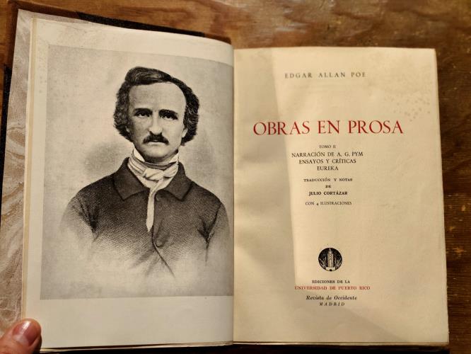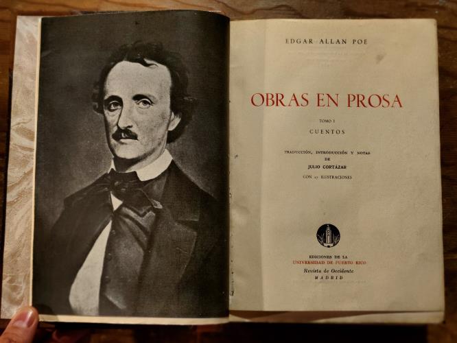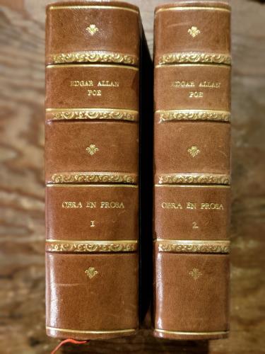 Dos tomos. Holandesa, sin refinar. PRIMERA EDICIÓN de la célebre traducción de Cortazar. 21 ilustraciones. Retrato de Poe en cada tomo.