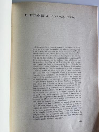 Rústica. Bordes con pérdidas en cubierta. Conferència pronunciada al Salón de Actos de la Facultad de Letras, en el ciclo commemorativo del IV Centenario de la dunfdación de la Universidad de San Marcos, el 17 d emaig de 1951.