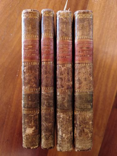 Cuatro láminas y una plegada. Española, de época. Letra manuscrita a la vuelta de guarda en el tomo I. Ejemplar muy limpio 170 años después de su edición.
